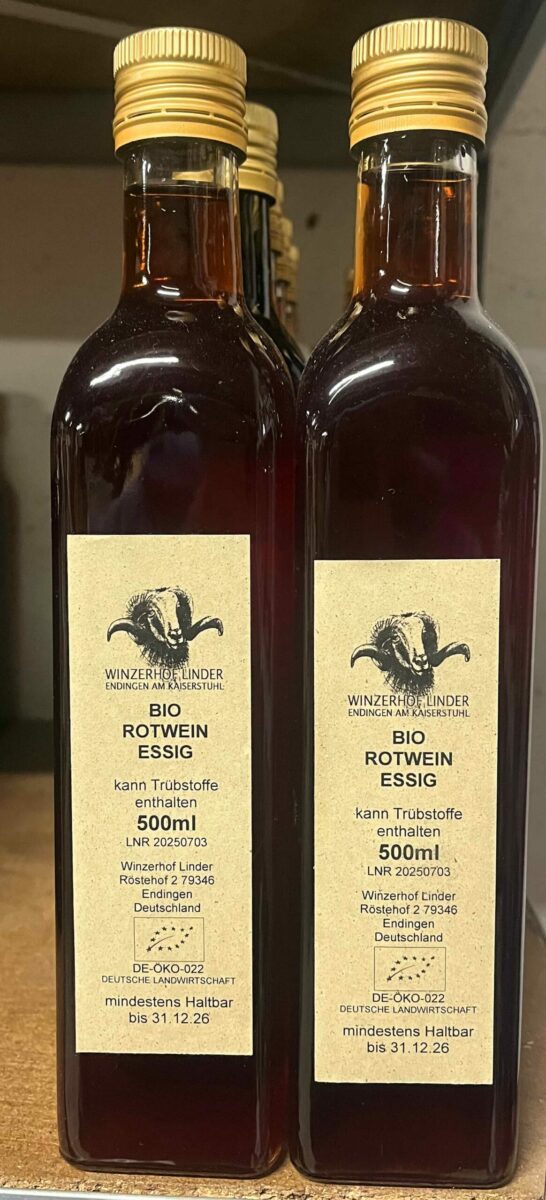 Kräftiger Rotweinessig aus Spätburgunder Rotwein.